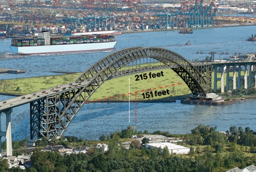 At high tide, 151 feet of empty air lies between the waters of the Kill Van Kull and the steel deck of the Bayonne Bridge. They may be the most consequential 151 feet in North America.