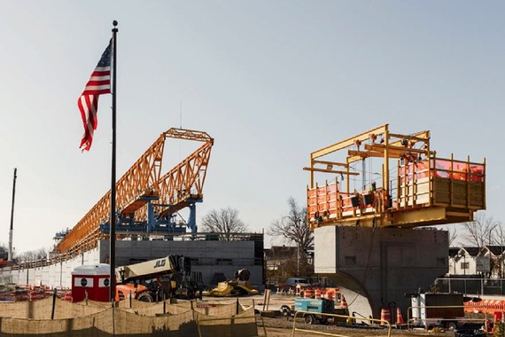 The five-year, $1.3 billion project is by far the most ambitious such bridge modification to date. Among other challenges, the road-raising must contend with tight confines—both because the bridge is to remain open to traffic throughout construction and because homes lie less than 20 feet from the work site. Watching the Port Authority’s animation of the project (available online) is like watching a game of Twister played by cranes and concrete blocks.