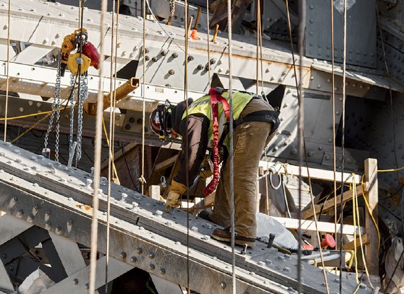 Meanwhile, to strengthen the arch in order to support heavier traffic (and maybe, one day, light-rail tracks), additional steel is being installed over the original structure (below). When that’s completed, the new, higher roadway will be hung, two lanes at a time. After the first two lanes are in place, in mid-2016, the original roadway will be removed entirely, allowing the new, larger ships to pass underneath. (At which point, Papageorgis jokes, “Dennis and I can go out and have a glass of wine.”)