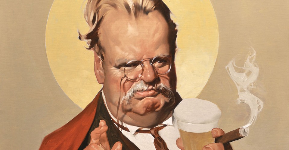 If the Catholic Church makes G. K. Chesterton a saint—as an influential group of Catholics is proposing it should—the story of his enormous coffin may become rather significant. Symbolic, even parabolic. Chesterton’s coffin was too huge, you see, to be carried down the stairs of his house in Beaconsfield, its occupant being legendarily overweight at the time of his death, in 1936. So it went out a second-floor window. Very Chestertonian: gravity, meet levity. Hagiographers might pursue the biblical resonance here, citing the Gospel passages in which a paralyzed man, unable to penetrate the crowds surrounding the house in Capernaum where Jesus was staying, is lowered in through a hole in the roof. Or they might simply declare that Gilbert Keith Chesterton’s was a spirit too large to go out through the conventional narrow door of death—that it had to be received, as it were, directly into the sky.