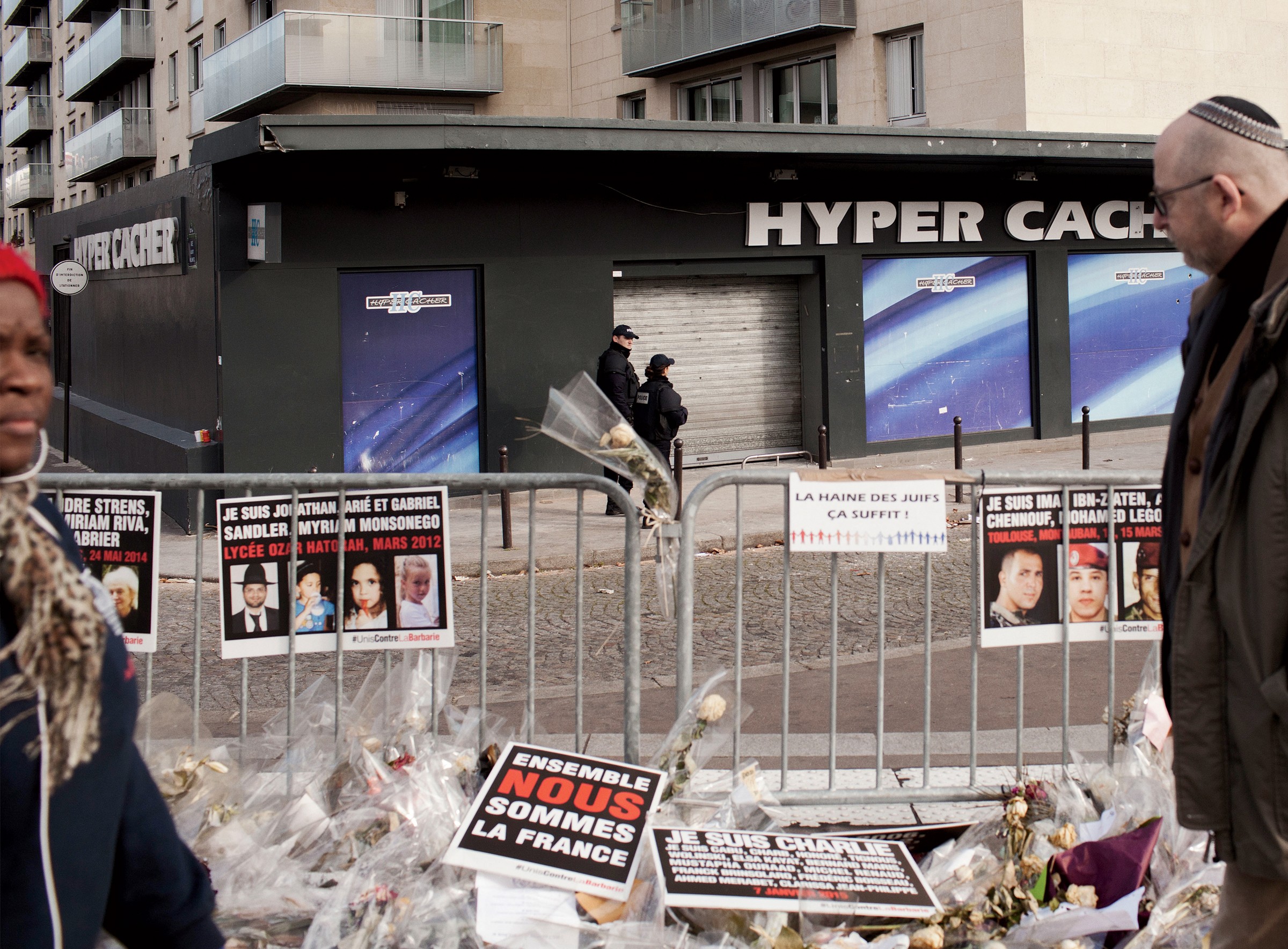 Reports suggested that a number of people were dead at the market. I said goodbye, and took the Métro to Porte de Vincennes. Stations near the market were closed, so I walked through neighborhoods crowded with police. Sirens echoed through the streets. Teenagers gathered by the barricades, taking selfies. No one had much information. One young man, however, said of the victims, “It’s just the Feuj.” Feuj, an inversion of Juif—“Jew”—is often used as a slur.