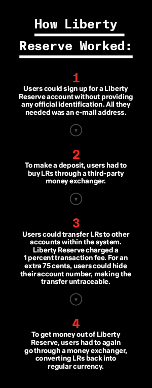 The underworld is a realm that thrives on paranoia. On May 24, 2013, criminals across the globe had good reason to panic: they couldn’t access their Liberty Reserve accounts. Rather mysteriously, the company’s Web site had stopped working. There were no explanations, no “We’re experiencing technical difficulties” notices. The home page simply redirected to a blank screen.