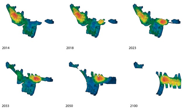 Kiruna’s move will happen slowly—very slowly. Starting with the first demolitions this spring, the town has given itself 85 years to retreat fully from the mine . The break between old and new will be neither sudden nor absolute; instead, as new neighborhoods are built on Kiruna’s eastern edge and old ones disappear, the town will inch eastward. By 2100, a greener city will have a zigzagging border that will bring fingers of open space close to the town’s heart.