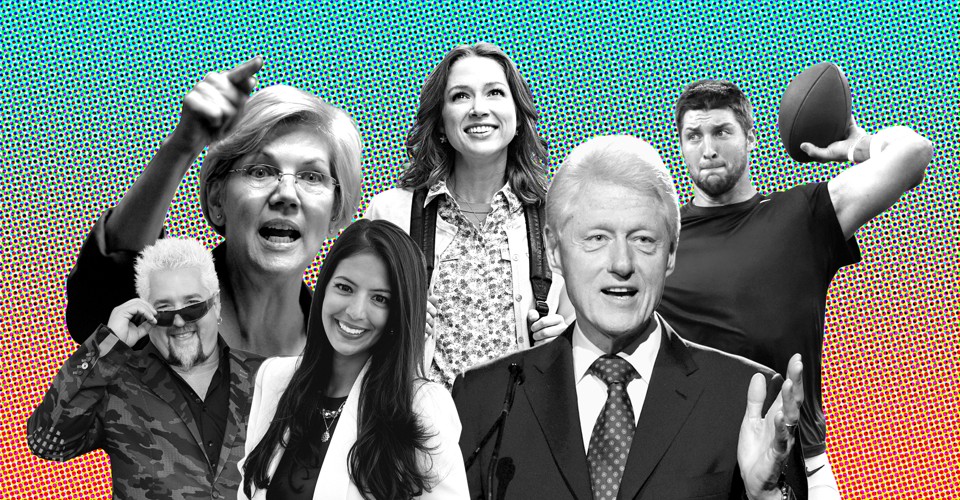 Image credits: Tebow: Elise Amendola/AP; Warren: Timothy D. Easley/AP; Kimmy Schmidt: Eric Liebowitz/Netflix; Food Babe: Jonathan Alcorn/Bloomberg/Getty; Selfie: Andy Wong/AP; Fieri: Al Powers/Powers Imagery/Invision/AP; Hipster: Rich Fury/Invision/AP; Car: Tony Avelar/AP; Clinton: John Shearer/Invision/AP