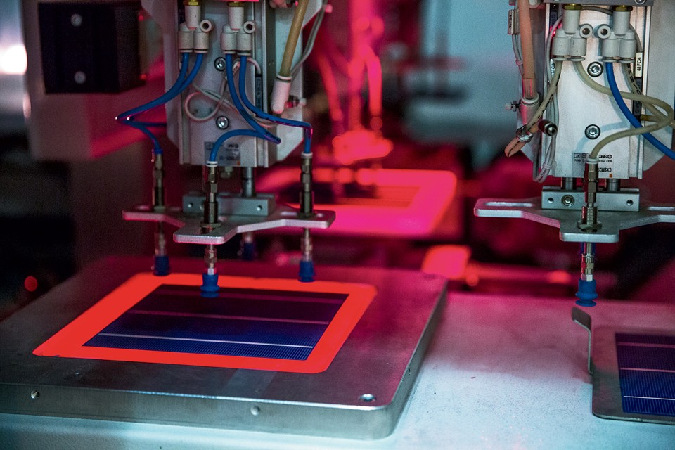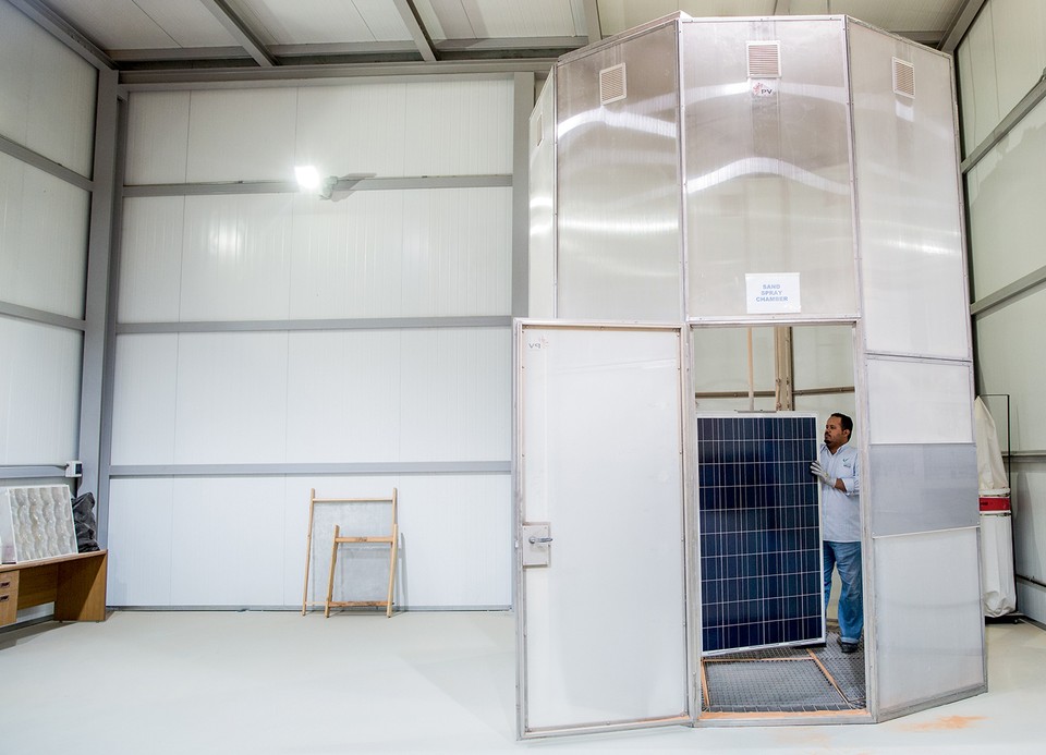 But the factory at Al-Uyaynah shows how far the country has to go. The equipment comes mostly from Europe, and the solar cells—the square slices of silicon that make up a solar panel—are made in Taiwan. Often, as on the day I visited, the assembly line doesn’t produce much, because materials are stuck in transit. Once, a shipment of the plastic sheeting used to seal the backs of solar panels sat at a Saudi port for a month, and it melted.
