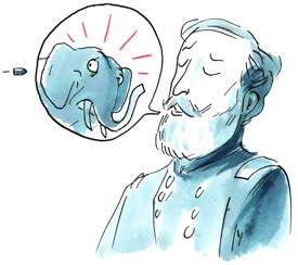 “They couldn’t hit an elephant at this distance.” — Union Major General John Sedgwick, reprimanding his men for ducking for cover, just before he was killed at the Battle of Spotsylvania.