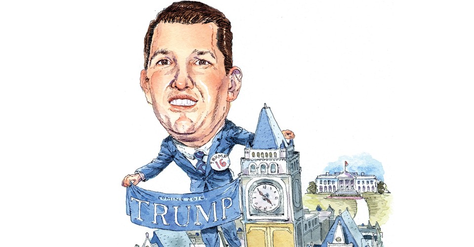 Trump fils, the firstborn and namesake of the presumptive Republican presidential nominee,* is an executive vice president of the Trump Organization, where his projects include the D.C. hotel. Don, as he is known to friends, is strapping and tanned, with a chestnut-brown mane that he wears aggressively gelled back from his forehead, having apparently learned from his father to pick a hairdo and stick with it.