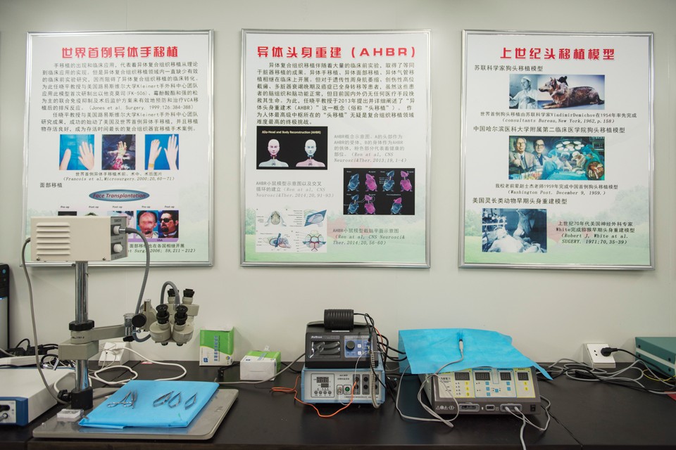 Ren, who’s running much of the actual research, refuses to commit to a date, saying that while late 2017 isn’t impossible, every preliminary experiment would have to go perfectly for the surgery to take place then. His team still needs to collect data from hundreds of mice, and conduct more large-animal transplants, probably with dogs. Ren also wants to choreograph the surgery with cadavers and, as a final test, swap the heads of two brain-dead donors. All of which takes time—months, maybe years. The preliminary work for the first hand transplant Ren took part in lasted two years, and that procedure involved 20 surgeons, not 80.