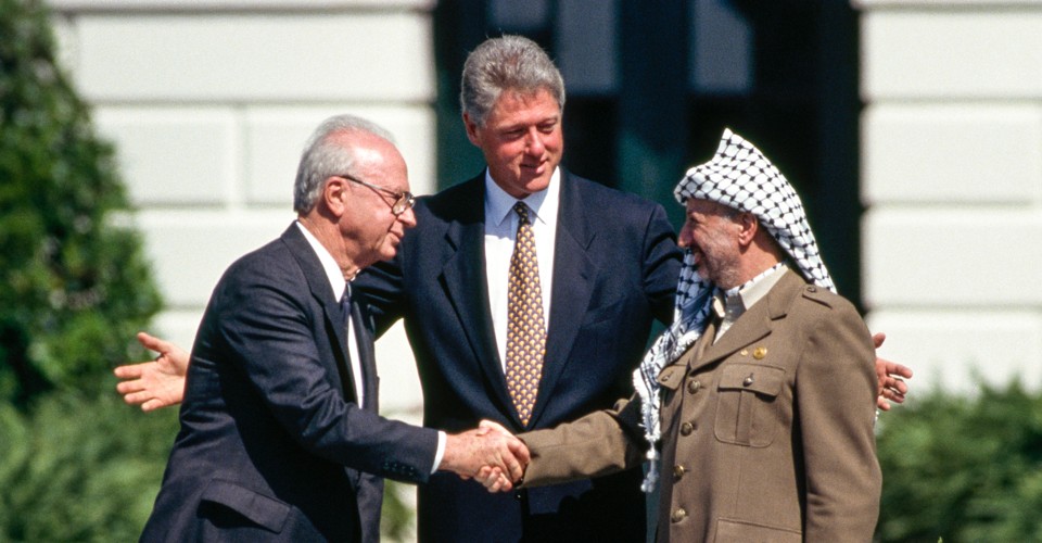 Bill Clinton was a president singularly taken by the idea that making peace between Palestinians and Israelis was possible. He devoted a disproportionate amount of time and political capital to the search for a solution to the conflict. Even before the man he describes as his hero, Yitzhak Rabin, the Israeli general turned prime minister, was assassinated in 1995, Clinton believed that he had been called to this cause. Uniting the children of Isaac and Ishmael, the warring sons of Abraham, was, for a Southern Baptist, too tempting a challenge to ignore. In 2000, he managed to bring the two sides close—infuriatingly close, in retrospect—to a final status agreement. But the two-week summit at Camp David that July, and subsequent rounds of negotiations between the Israeli prime minister, Ehud Barak, and the Palestinian leader, Yasser Arafat, failed to close the remaining gaps. In his very last weeks in office, Clinton was still trying for an agreement, presenting a set of ideas that came to be known as the Clinton Parameters, which set the framework for a final push. The Israelis accepted them, with reservations.
