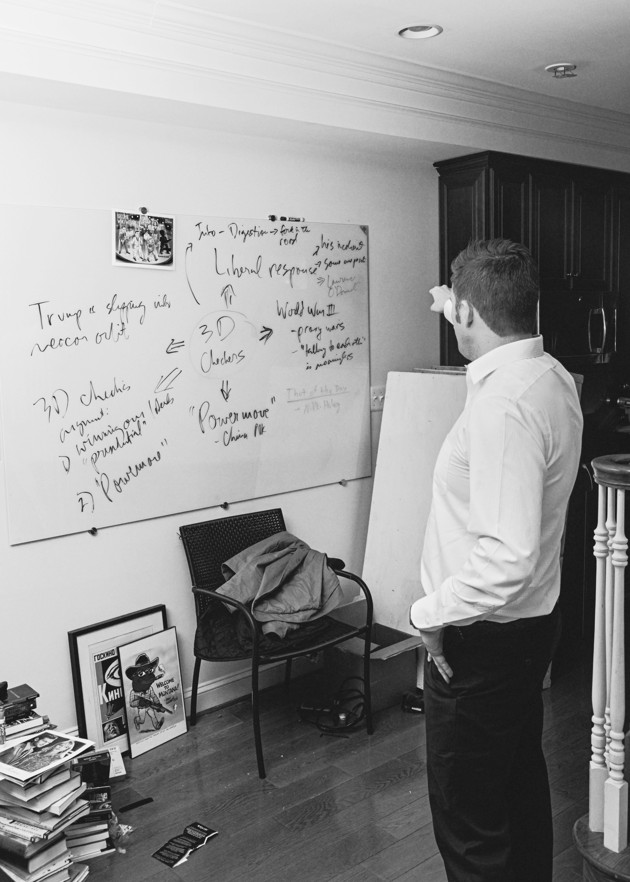 When I asked Spencer to meet me in January, before Trump’s inauguration, he showed better manners than his fans. (He denies that he advocates violence.) The front door of his apartment in Alexandria, just outside Washington, is not clearly marked, and even though he had given me the address, I wouldn’t have found it had a bespectacled young man not intercepted me outside, while I was rummaging around trash cans looking for a house number. “Can I help you?” he asked. He had brown hair and a geeky affect.