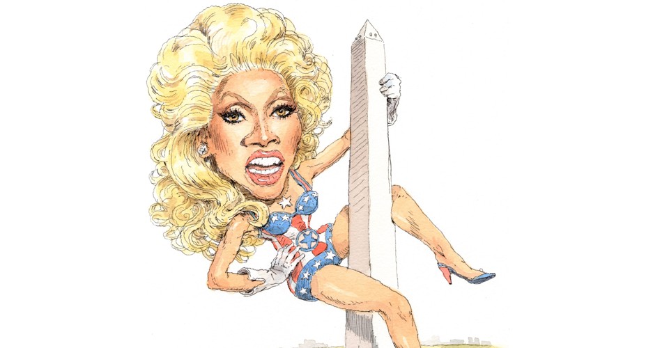 RuPaul Charles, America’s most famous drag queen, sat on a gold lamé couch at a luxury hotel in Midtown Manhattan one Tuesday in March, doling out advice for the white working class. Wearing a patterned suit jacket and black slacks—one of his signature out-of-drag looks—he made a hand motion to suggest widgets being moved from one part of an assembly line to the next.