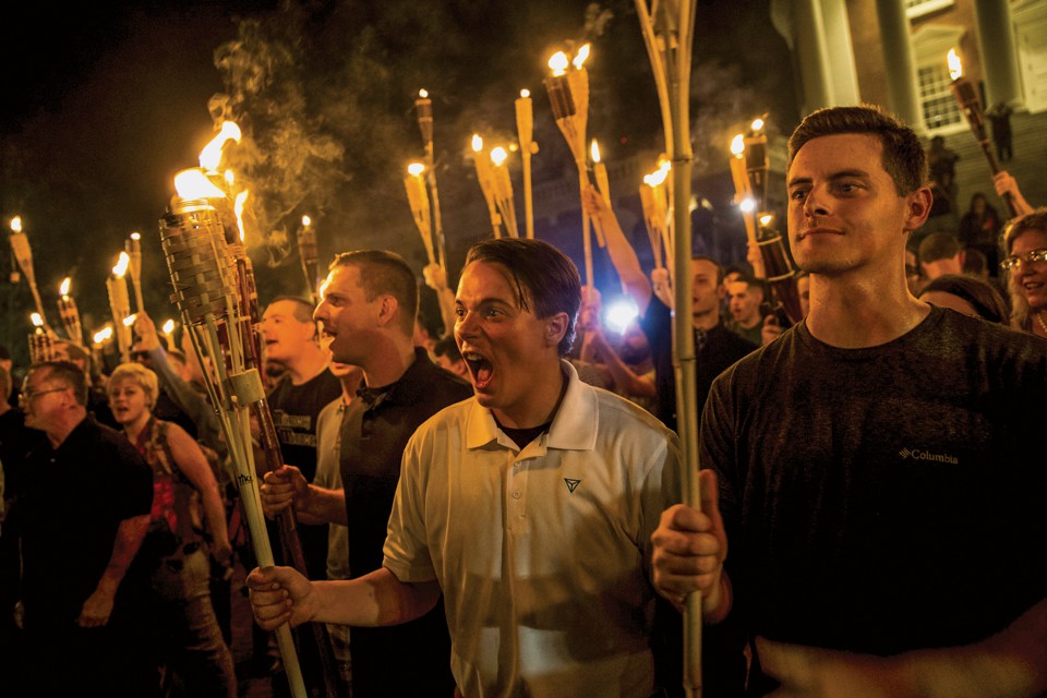 Over the coming months, however, Anglin continued to build his audience and urge his followers to take their hate offline, into the real world. In August, when white nationalists actually did stage a major rally in Charlottesville, Virginia, many of his readers were there, chanting slogans he had coined. The alt-right, it became clear, was coming off the message boards and into the streets.