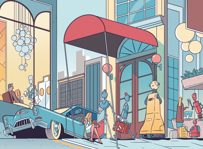 These new positions once seemed safe from the robot hordes because they required a human touch in a way that manufacturing or mining jobs did not. When ordering a coffee or checking into a hotel, human beings want to interact with other human beings—or so we thought. The companies bringing robots into the service sector are betting that we’ll be happy to trade our relationship with the chipper barista or knowledgeable front-desk clerk for greater efficiency. They’re also confident that adding robots won’t necessarily mean cutting human jobs.