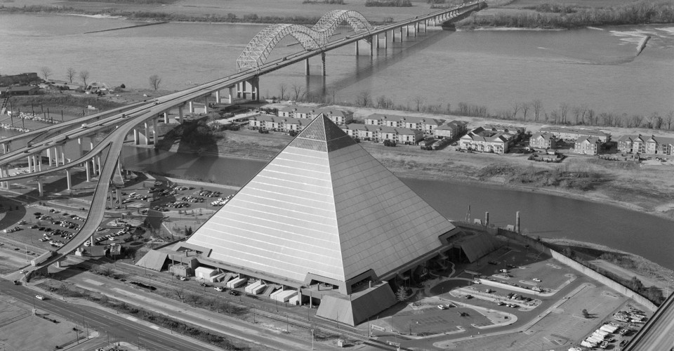 The Memphis Pyramid (above), one of Tennessee’s most famous buildings, overlooks the Hernando DeSoto Bridge across the Mississippi River. The bridge is an iconic symbol for Memphis, spanning the distance from Tennessee to Arkansas. That’s why Black Lives Matter protesters shut it down in 2016, echoing sanitation workers’ demands in 1968 for economic justice and calling for an end to police brutality.