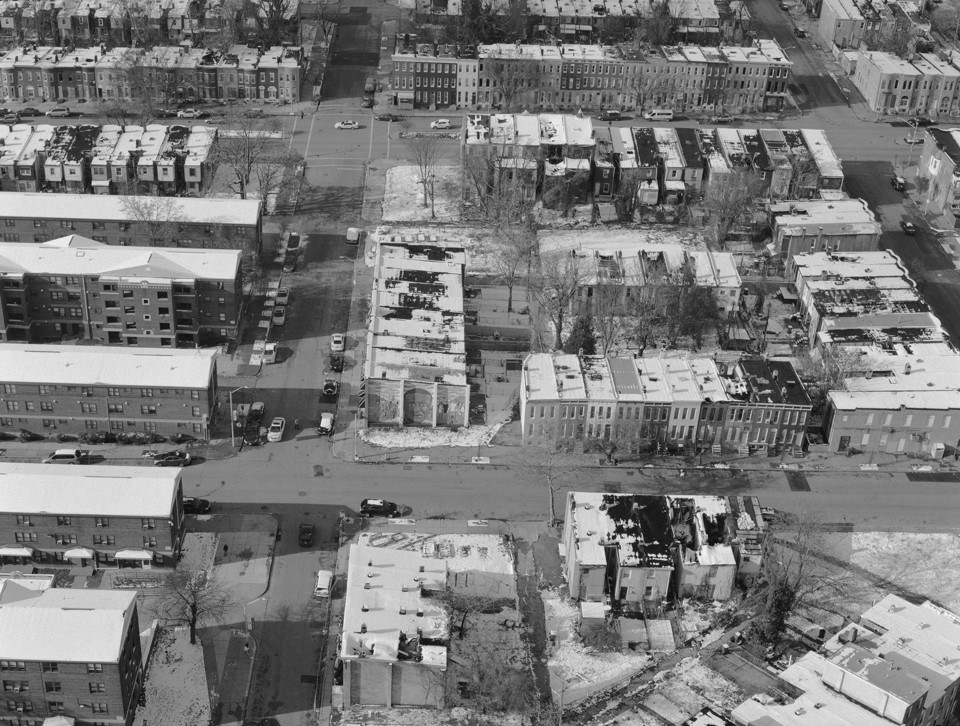 The 2015 Baltimore Uprising saw the city’s most extensive protests since 1968’s Holy Week Uprising. The 1968 disturbances started on the 400 block of Gay Street (above), where a crowd of people had gathered on April 6. After the windows of a hat shop were smashed, fires and looting broke out along Gay Street.