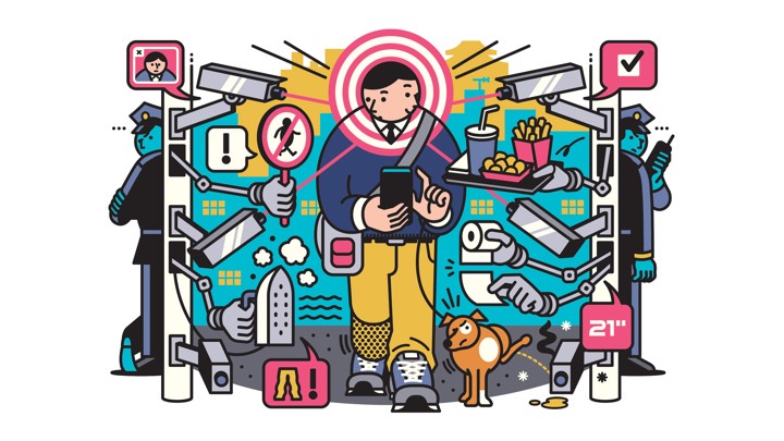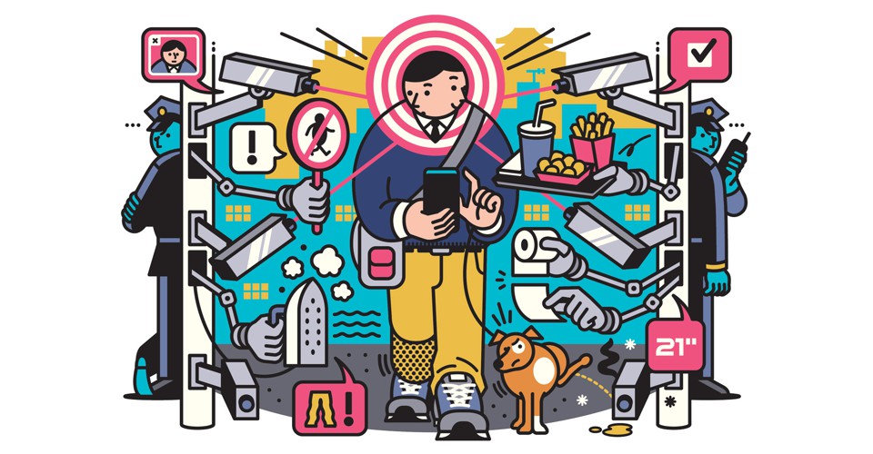 China is rife with face-scanning technology worthy of Black Mirror. Don’t even think about jaywalking in Jinan, the capital of Shandong province. Last year, traffic-management authorities there started using facial recognition to crack down. When a camera mounted above one of 50 of the city’s busiest intersections detects a jaywalker, it snaps several photos and records a video of the violation. The photos appear on an overhead screen so the offender can see that he or she has been busted, then are cross-checked with the images in a regional police database. Within 20 minutes, snippets of the perp’s ID number and home address are displayed on the crosswalk screen. The offender can choose among three options: a 20-yuan fine (about $3), a half-hour course in traffic rules, or 20 minutes spent assisting police in controlling traffic. Police have also been known to post names and photos of jaywalkers on social media.