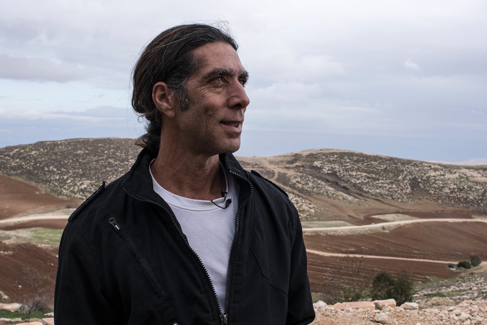 For miles I was surrounded by mostly empty land and sunbaked hills. The man I was to interview, a settler named Noam Cohen, appeared, walking past his front porch, which sported two dirty sofas and a table that was currently being used by his dog for shade. With his long hair tied in a ponytail, graying temples, and white T-shirt and green pants fitted on a lean frame, Cohen looked like Iggy Pop. I felt that I’d seen Cohen countless times before on Telegraph Avenue, in Berkeley, shrouded in a fog of weed.