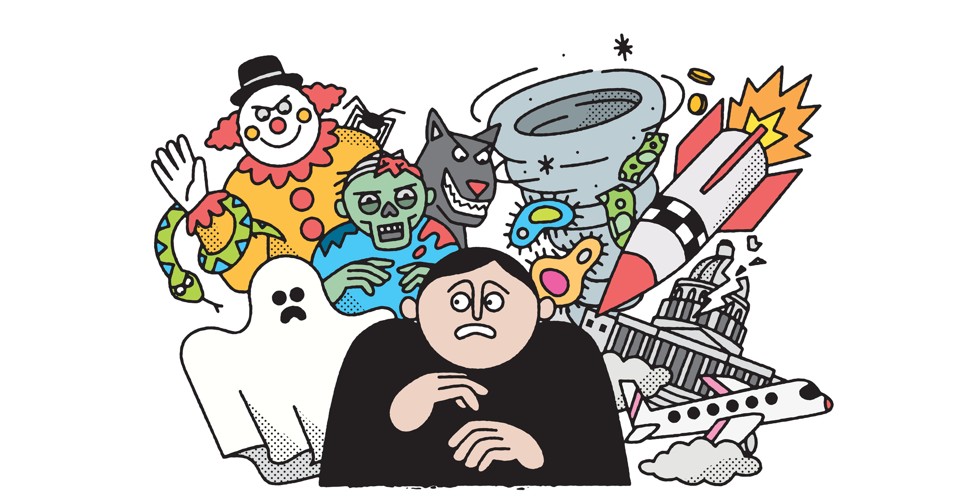 Our fears run broad and deep, and are every bit as diverse as we are. The 2017 version of Chapman University’s Survey of American Fears tabbed “corruption of government officials” as the most common fear, afflicting nearly 75 percent of respondents; concerns about the health-care system, the environment, personal finance, and war also figured in the top 10. Such spine-tingling triggers as public speaking and enclosed spaces landed in the bottom half of the 80 fears polled; clowns were slightly more scary than zombies, who were only slightly more scary than ghosts.