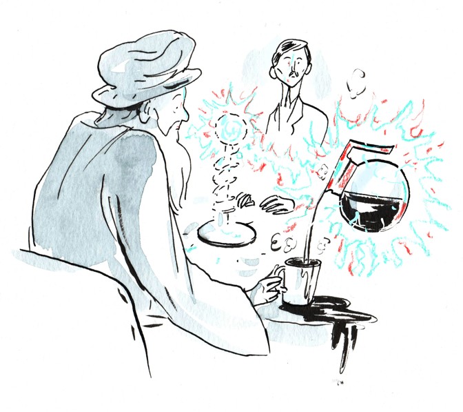 Flannery O’Connor and Edgar Allan Poe at lunch, joined by Truman Capote to write up their visit. A young O’Connor admired Poe’s stories, but Capote would need to explain O’Connor to Poe. Once the conversation began in earnest, the two writers might learn much from each other, while the rest of us would have much to laugh about and comment on later.