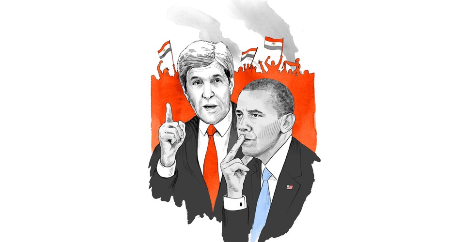 Barack Obama summoned his National Security Council to the White House on July 4, 2013, the day after General Abdel Fattah al-Sisi had appeared on television to declare that the Egyptian people had called on him to “secure essential protection for the demands of the revolution,” and the military had encircled the presidential palace, with Egypt’s fifth president, Mohamed Morsi, in it. Obama had recently reminded journalists that opponents of the democratically elected Morsi should follow “legal, legitimate processes” to remove him. Now, to a surprised room, he announced that of course the United States could not call Morsi’s ouster a coup d’état.