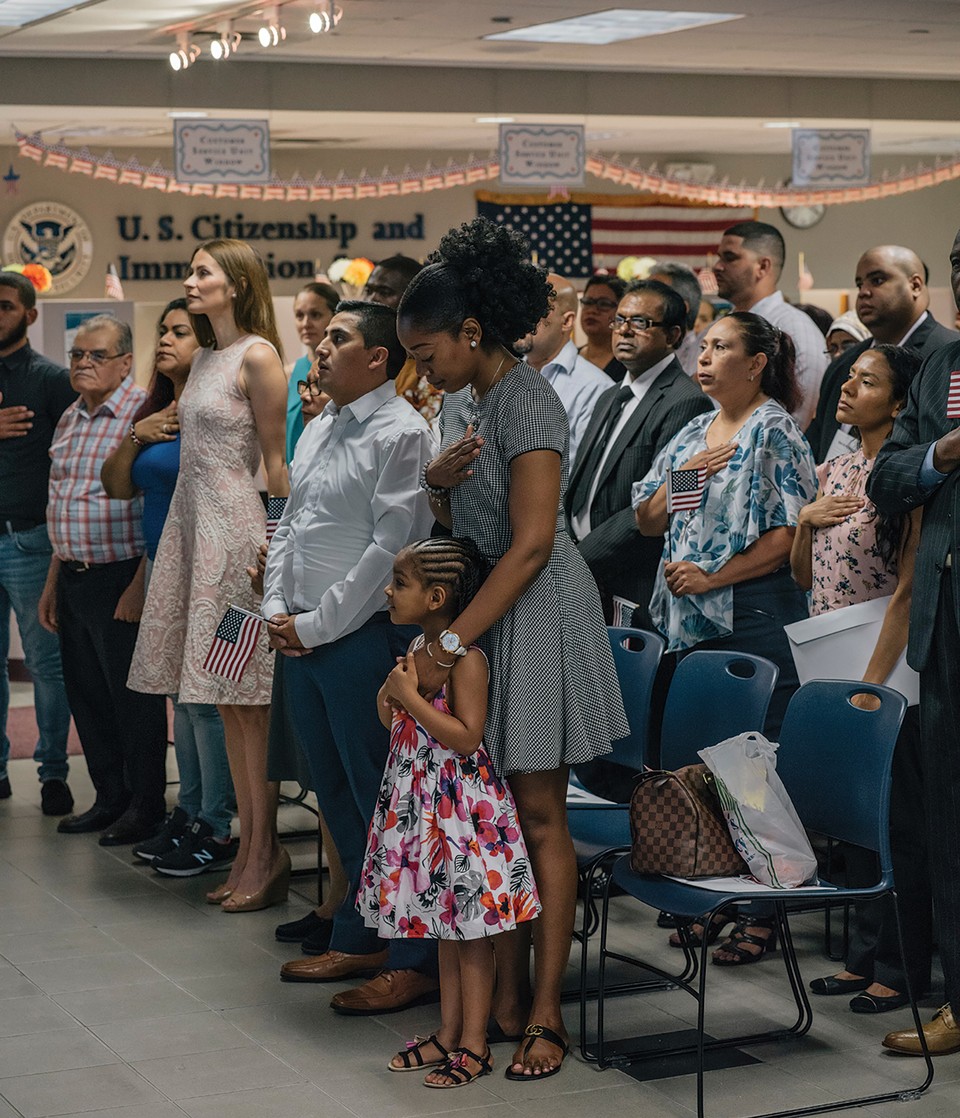 Adenawel Ledesma, 23 (above), a U.S. Army specialist from the Dominican Republic, waits to participate in a naturalization ceremony in Manhattan, after serving two years in the military. In 2017, the New York District of U.S. Citizenship and Immigration Services processed about 11 percent of all naturalizations in the United States, accepting approximately 78,000 new citizens.