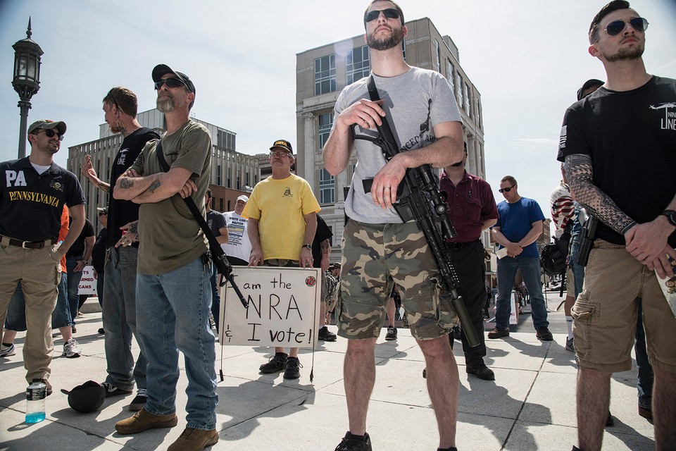 Gun-rights advocates rally in the state capital—and in others—on April 14 to oppose efforts to pass stricter gun-control laws, three weeks after the March for Our Lives, a student-led demonstration in Washington, D.C., in support of such laws.