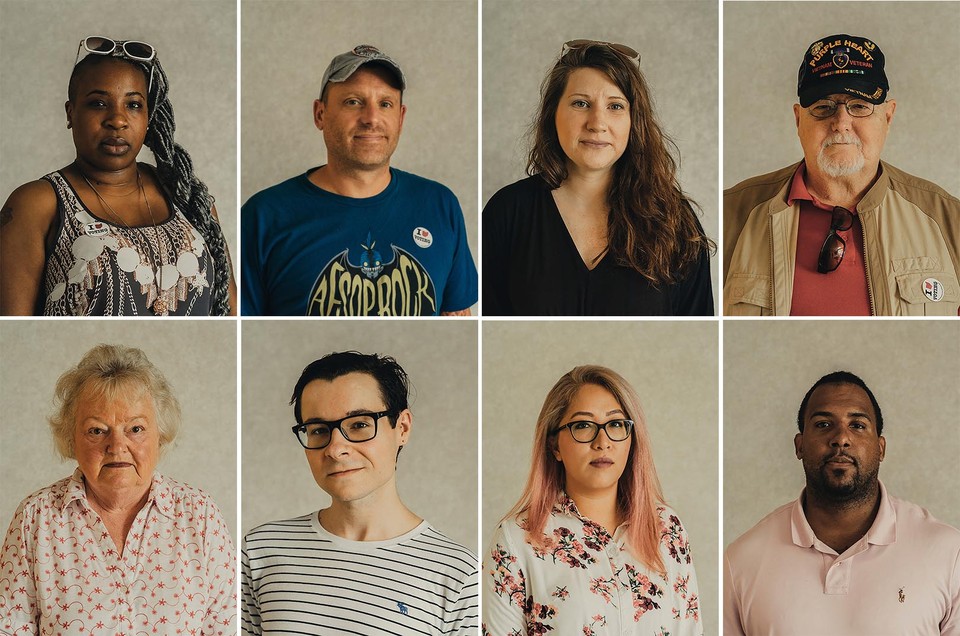 Voter turnout on August 7 to fill the open congressional seat in Ohio’s 12th District was unusually high for a special election, as it has been for many primaries and general elections this year. At the time of this writing, absentee ballots were still being counted and the race between the Republican candidate, Troy Balderson, and the Democratic candidate, Danny O’Connor, was too close to call. Voters pictured below: (top row) Sarah Napper, Justin King, Dayna Hildreth, Douglas Kirk; (bottom row) Judy Howard, Gage Ruhlen, Anh Hoang, James Sullinger.