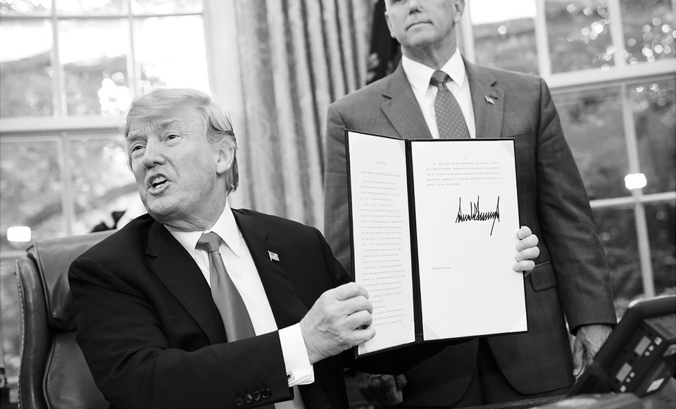 Such a move would carry echoes of a law passed recently in Hungary that criminalized the provision of financial or legal services to undocumented migrants; this has been dubbed the “Stop Soros” law, after the Hungarian American philanthropist George Soros, who funds migrants’-rights organizations. Although an order issued under ieepa would not land targets in jail, it could be implemented without legislation and without affording targets a trial. In practice, identifying every American who has hired, housed, or provided paid legal representation to an asylum seeker or undocumented immigrant would be impossible—but all Trump would need to do to achieve the desired political effect would be to make high-profile examples of a few. Individuals targeted by the order could lose their jobs, and find their bank accounts frozen and their health insurance canceled. The battle in the courts would then pick up exactly where it left off during the Obama administration—but with a newly reconstituted Supreme Court making the final call.