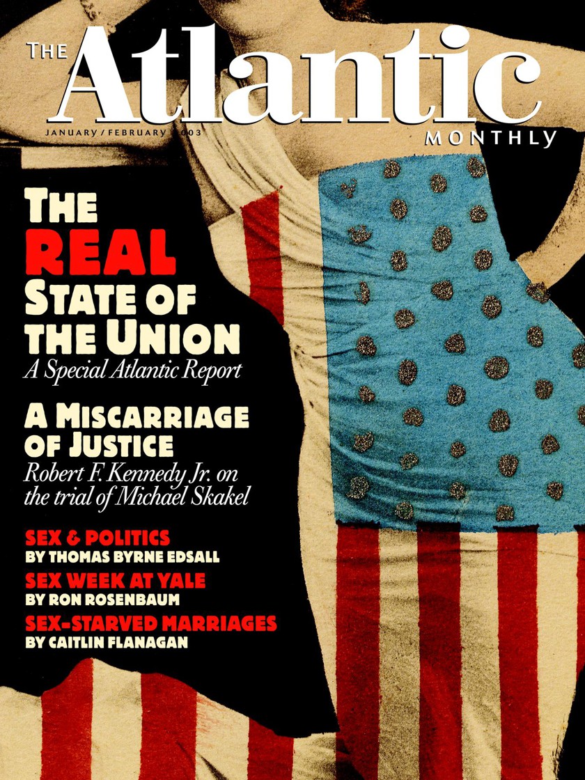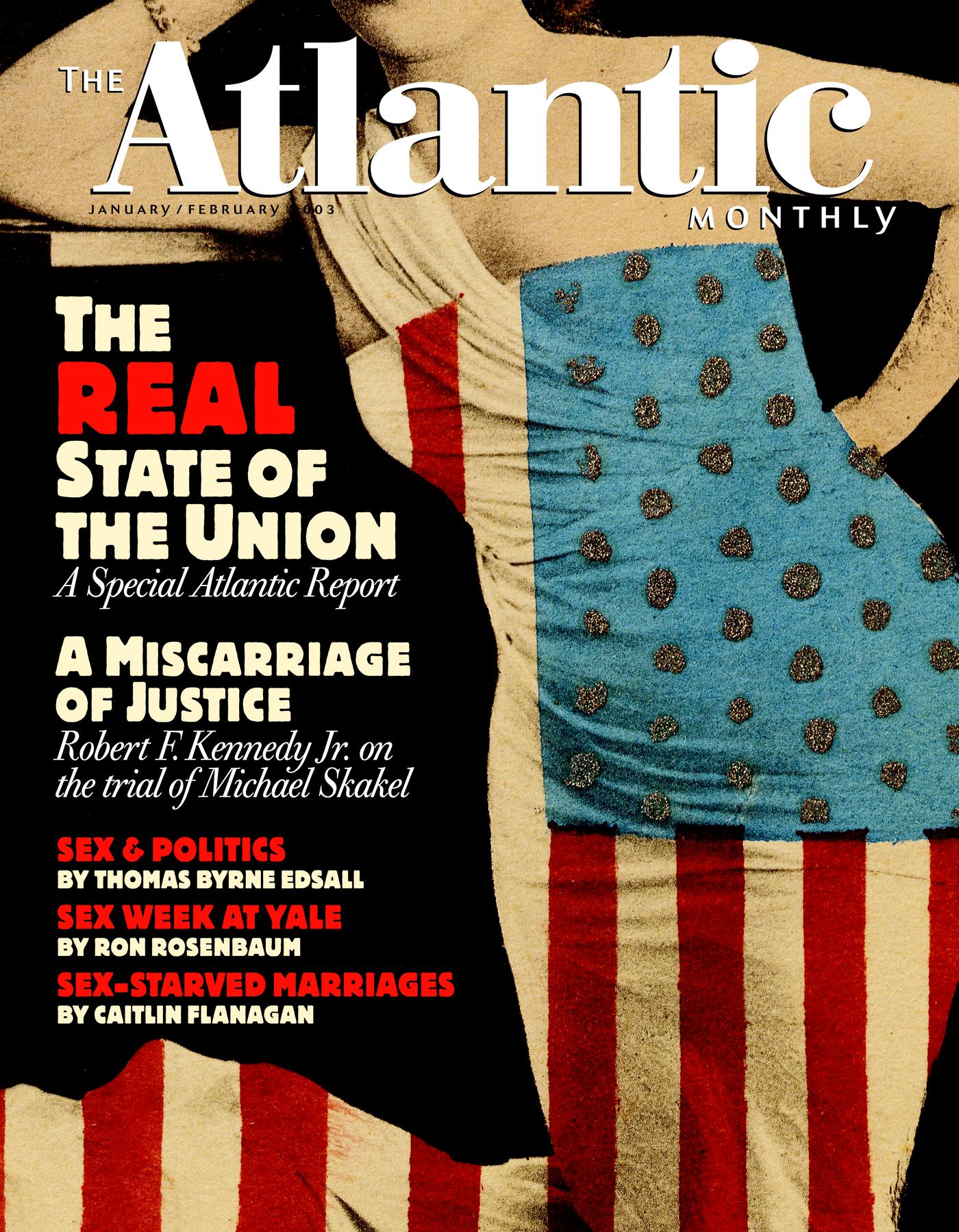 “The Real State of the Union”; Robert F. Kennedy Jr., “In Defense of Michael Skakel”; Patricia Stacey, “Floor Time”; Ron Rosenbaum, “Sex Week at Yale”; Caitlin Flanagan, “The Wifely Duty”; Christopher Hitchens, “The Wartime Toll on Germany”; fiction by Alison Baker; and much more.