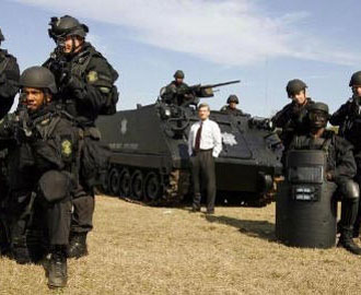 If you liked the wheeled APC in Galax Virginia, you're gonna love the M113 with a cupola mounted .50 cal machine gun that Richland County SC picked up [ a few years ago].Note the SWAT team posing around the vehicle with submachineguns. Lovely.As a former US Army Cavalry soldier, I have to say I am astonished and horrified that anybody in law enforcement would think that an M2 .50 cal machine gun has any place at all in a police force. It is a weapon made to destroy vehicles (like light tanks, APC's and helicopters) and unreinforced buildings. A single round can literally tear a person in half if hits him in the abdomen. It will go through your house and the house after that and then continue blithely along for another mile or more until it hits something else.