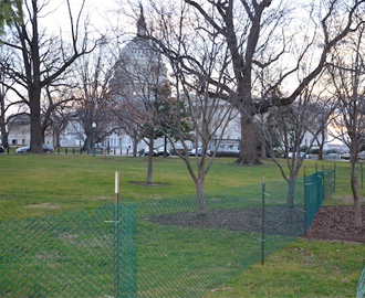 And, from the indispensable Department of Fear, a few shots of the new double-row "Green Zone D.C." fencing that is going up to build in extra buffers between the Congress and the public. The D of F suggests that this is an homage to the fondly remembered Green Zone in Iraq:
