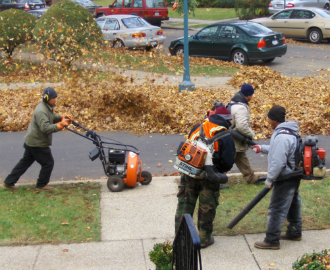 Consider instead the use of a ball-peen hammer. A single infiltrant can seek out the offending leafblowers, and with enough knowledge of their anatomy can render them permanently incapacitated, perhaps leaving them in the open for a covert airlift of the bodies out of the affected space. Gas leafblowers, for example, many times have exposed engines and spark plugs that can be efficiently destroyed, quickly and at minimal cost (hammers are a dollar at the hardware store, after all). I believe any safety concerns with placing a pair of hammer-wielding boots on the ground (metonymy? synecdoche?) are minimal, as it is quite impossible for the inanimate leafblowers to defend themselves or organize a resistance or insurgency. Plastic explosives, on the other hand, of course have an inherent danger to life and limb regardless of the level of resistance - another inefficiency.