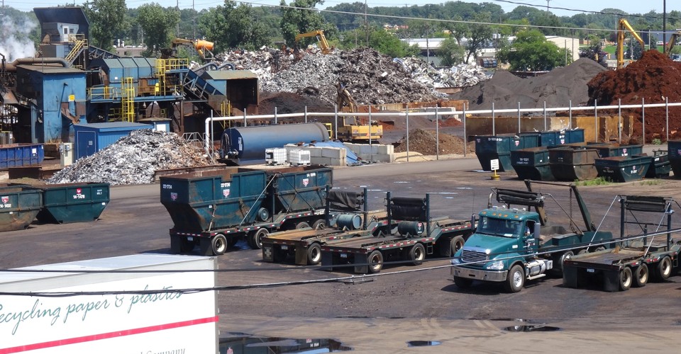 How a shipping container carrying waste industrial/packaging paper looks when it arrives at one of the company's away-from-downtown recycling facilities.