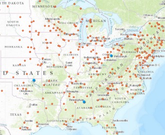I am going to start quoting those, three per day, until the interesting ones run out. As soon as we resolve some bleeding-edge issues with our mapping software, I will refer you to a companion posting at our special 'American Futures' site with fancy maps showing the cities I am talking about. For now, words only -- oh, plus the screen shot above showing all the cities readers have suggested, with the three discussed today in blue. Here we go.