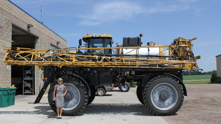 One of Raven's divisions produces GPS guidance systems for high-tech farm equipment like the one shown above, with Deborah Fallows there to indicate scale. These (as also explained on the Marketplace report) have been part of a digitized revolution in farming. GPS guidance allows them to plow furrows longer and straighter than had ever before been possible; to apply fertilizer to the exact points where seed had been sown; and in countless other ways to speed the age of "precision agriculture."