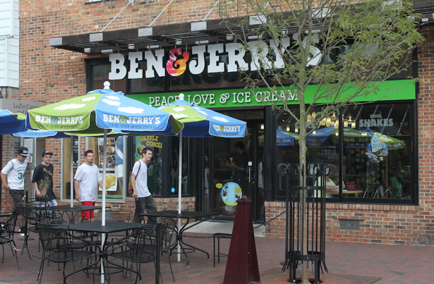 First, I noticed signs that target two subsets of the upscale population of Burlington: the literati and the affluent Canadian tourists (which may overlap). Just have a look at themed Eat-Pray-Love knock-offs: the savvy bookstore, whose patrons would recognize the allusion; the wine store with their connoisseurs; and finally, the ice cream shop of Burlington’s own favorite sons, Ben & Jerry.