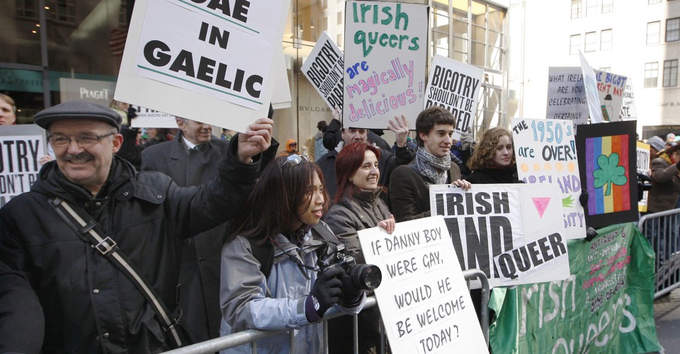 A group called Irish Queers protests the New York Police Department's participation in the city's 2012 St. Patrick's Day Parade.Chip East/Reuters