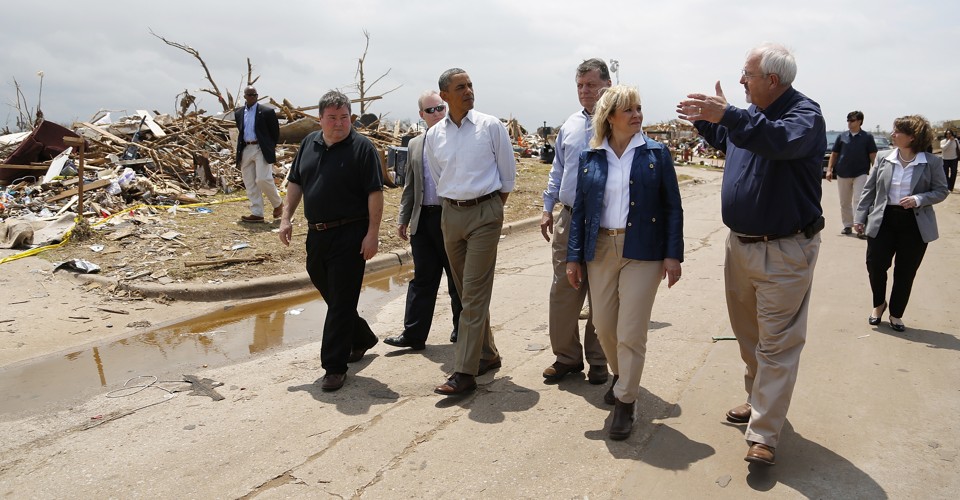 When we were in Joplin, there was a gentleman there, and the president says, “Were you here?” He describes all this stuff, how the tornado destroyed his house and he barely survived, and the president says, “So what’d you do?” And the guy looks at the president like [puzzled face], “I went and started helping people dig out. My neighbor was screaming for help.” The president says, “Sir, do you mind me asking how old you are?” And he’s in his eighties. It was not an isolated case. The most effective response you’ll get is just a simple request: “Once you do all the stuff you’re supposed to do, check on a neighbor.” It’ll save more lives than anything else we can do.