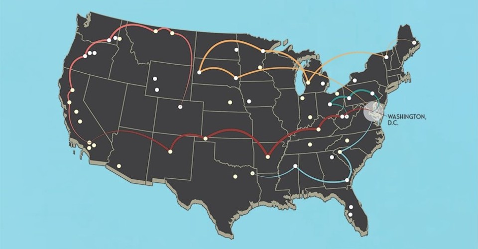 It includes a long cover story by me, with great pictures from around the country by noted photographer Mark Peterman; an illustrated map giving an idea of places we’ve gone, shown above; a piece by my wife Deb, about the surprising revival of libraries as civic centers (even in the post-print, post-physical-presence age); a half-whimsical checklist by me, on the ingredients of civic growth; and many other features.