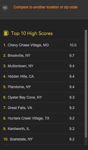 Here is a very different one: it is an interactive city-by-city depiction of how much money people spend on beer. It even has a way to do side-by-comparisons of two cities or specific zip codes, showing their beer metrics and some others too (including overall income level). Its list of the top 10 beer-spending neighborhoods or cities is at right.