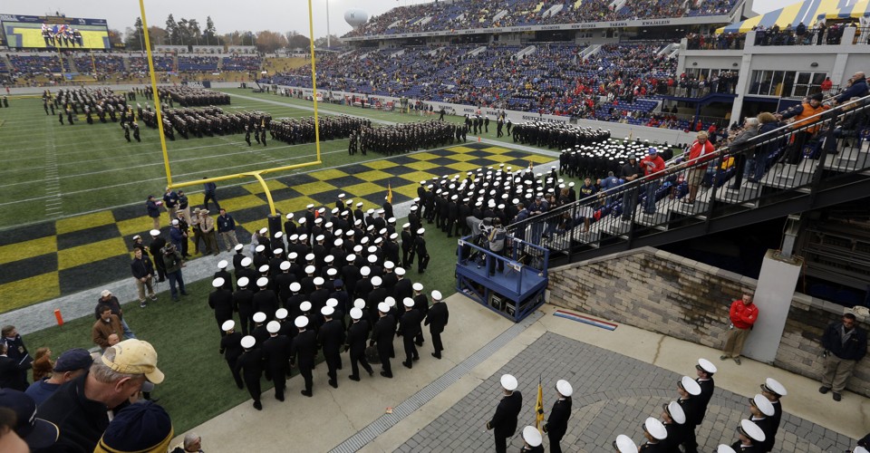Midshipmen march into Navy's stadium before a game against South Alabama in 2013. (Patrick Semansky / AP)