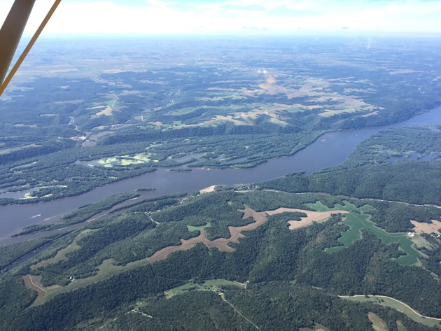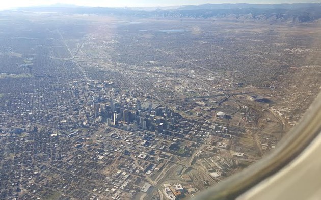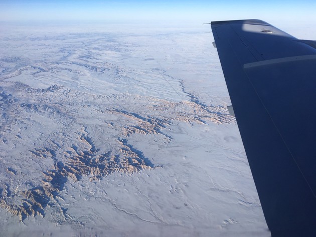 My wife Deb took this photo out the right window of our little propeller airplane. It was on Valentine’s Day 2015, one year ago this week, as we traveled from Ajo, Arizona, to San Bernardino, California, on a reporting trip.
