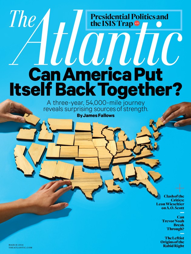 54,000 miles. Three years. That’s how long Jim Fallows and his wife Deb had been working on this month’s cover story (coming soon). Their goal was to fly to every corner of this country and find out, first hand, what is “going right” with America so that maybe we can fix what was wrong.