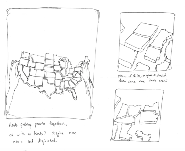 We settled on the puzzle with the hands. From there, some refined sketches: