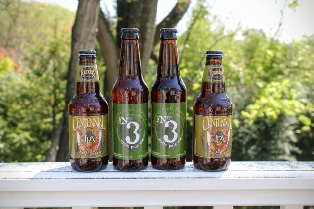 On the flanks in the shot above, twin cans of Screamin’ Reels IPA, from Saltwater Brewery in Delray Beach, Florida. And in the central tower, Category Five Imperial IPA from Due South Brewery in Boynton Beach, Florida. Both very much worthwhile, and conveniently available in cans for transport northward, where you see them posing in the back yard.