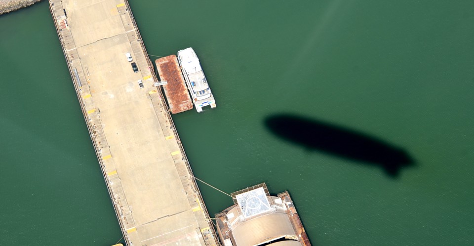 I love this one of a scuttled ship, especially when juxtaposed with the shadow of the airship above: