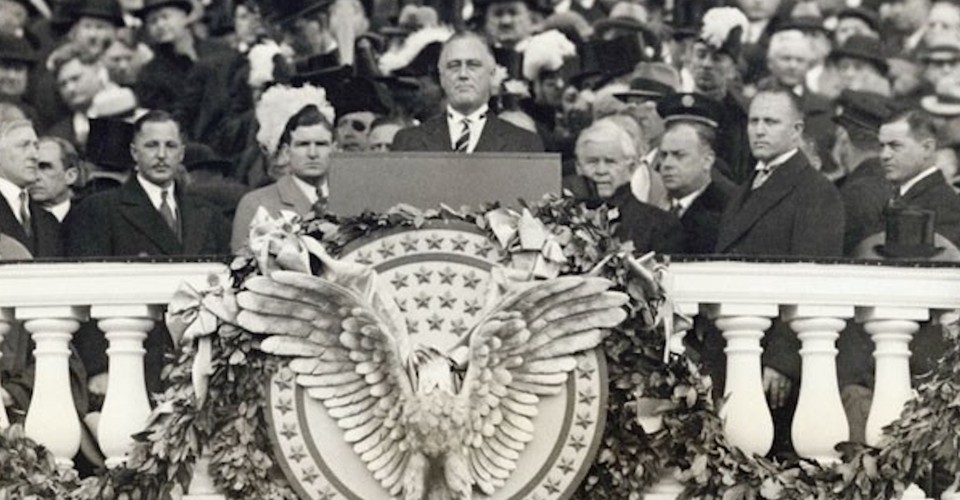 Franklin D. Roosevelt at his inauguration in 1933, with the famous line “the only thing we have to fear, is fear itself.” A reader, 23 years old, wonders how today’s fears compare with those of other eras. (Wikimedia)