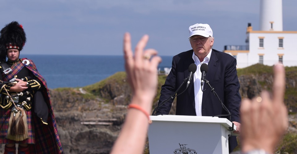 Thoughts from the presumptive GOP nominee, as he touched down in the one part of the UK that voted most strongly to remain part of Europe.