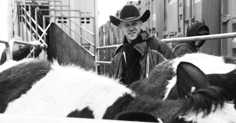 A cowboy with his herd in Maine, en route to Turkey. courtesy Quoddy Tides