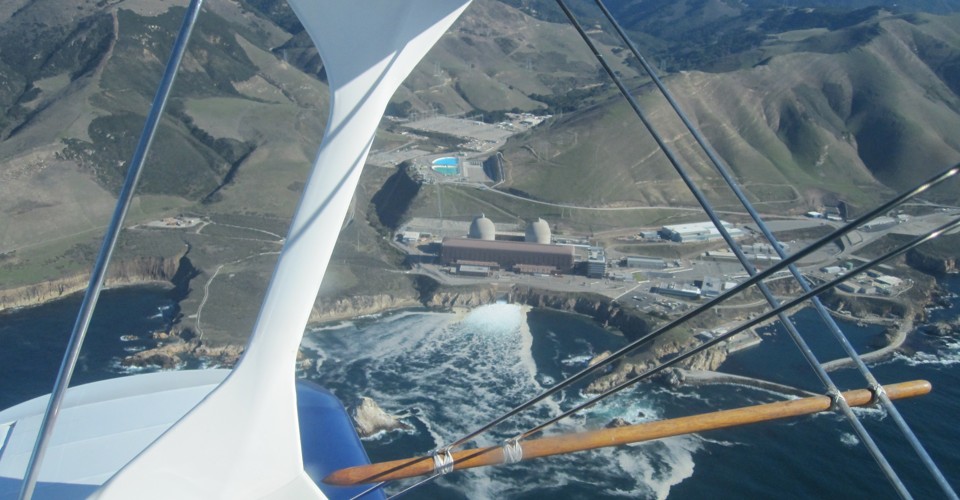 Here’s the Pacific Gas & Electric nuclear reactor at Diablo Canyon, near Avila Beach, California. The picture was taken from the front seat of a Pitts Special biplane. The Diablo Canyon plant has churned out energy for the state of California for over 30 years but may finally succumb to requests for its closure from environment groups.